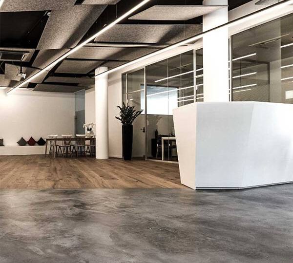 Die Raumplanung ist hervorragend, so dass jeder Bereich des Büros optimal genutzt wird. Die Farbe und das Materialkonzept sind sehr harmonisch und geschmackvoll, mit einem Schwerpunkt auf natürlichen Farbtönen und Materialien wie Holz und Beton. Der Design Betonboden und der Fußboden in Betonoptik sind ein echter Hingucker und verleihen dem Büro eine moderne und zeitgemäße Atmosphäre.